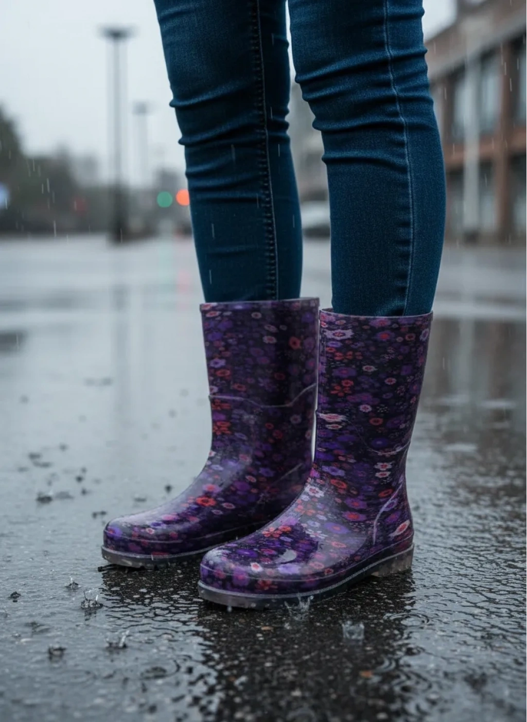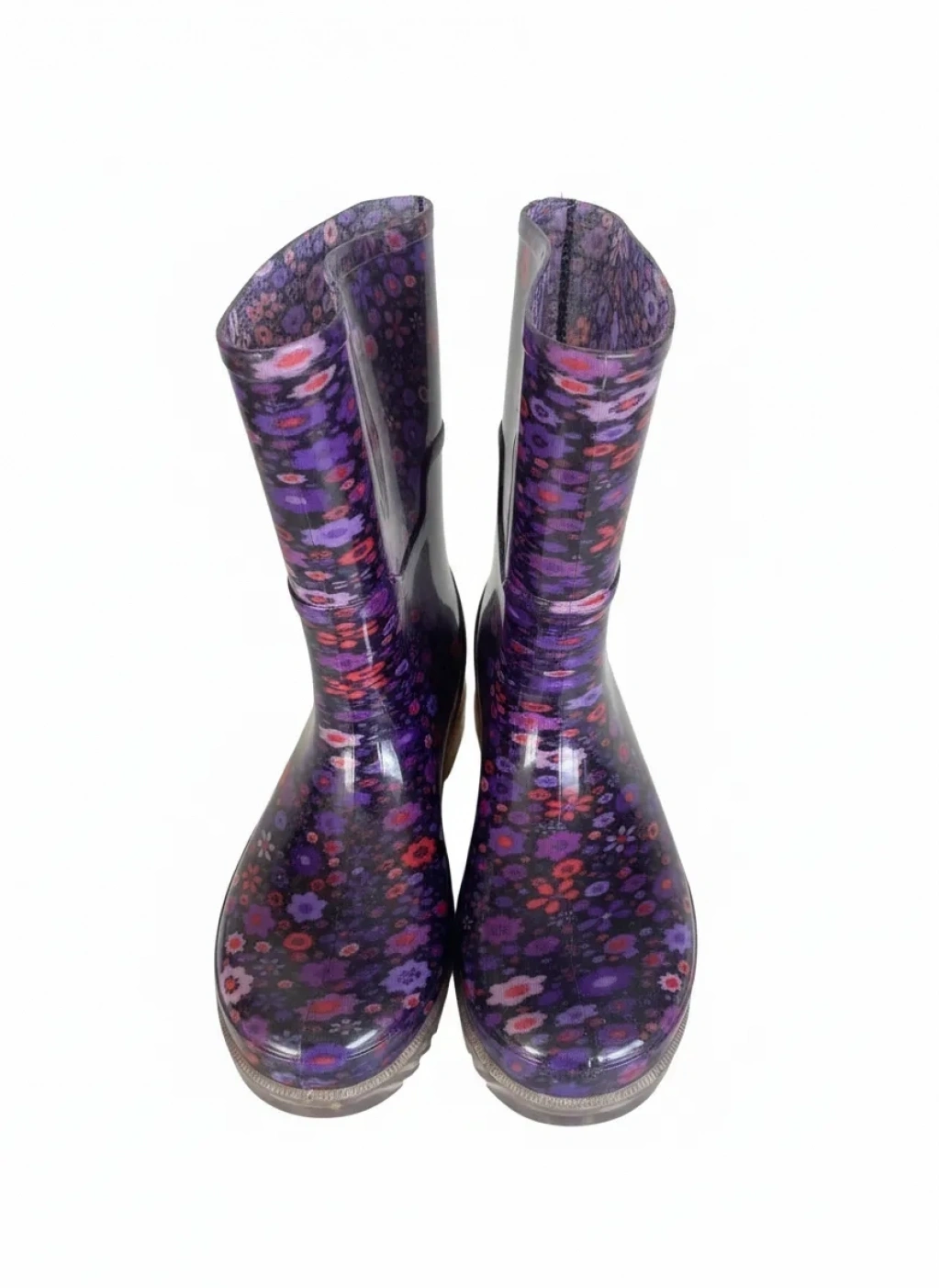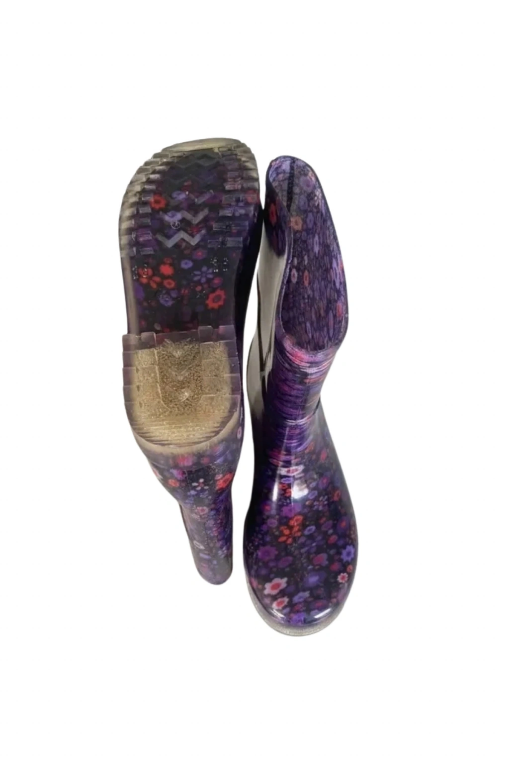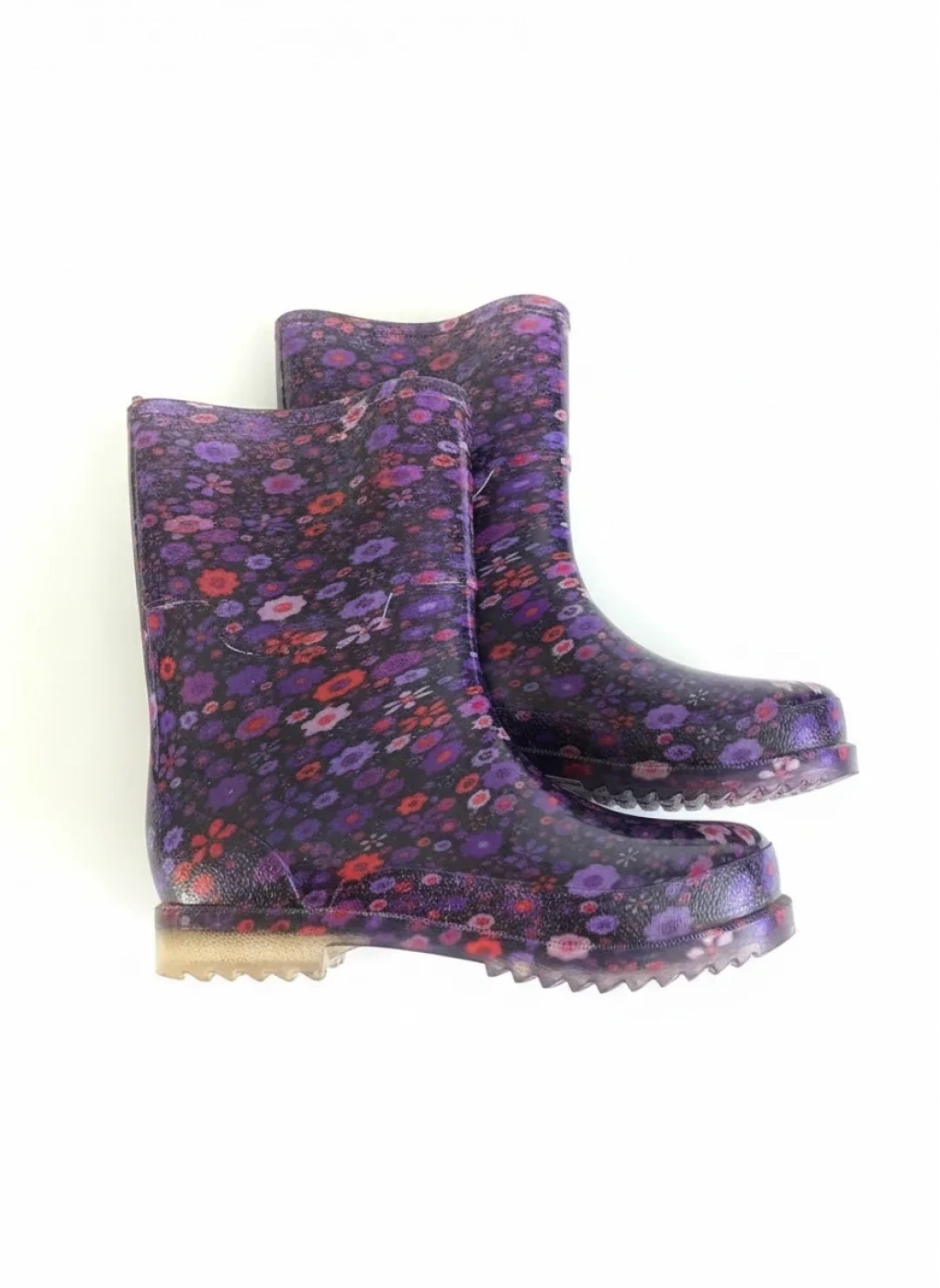 Bahçe ve Yağmur Çiçek Desenli Kadın Çizmesi 36-40 Mürdüm