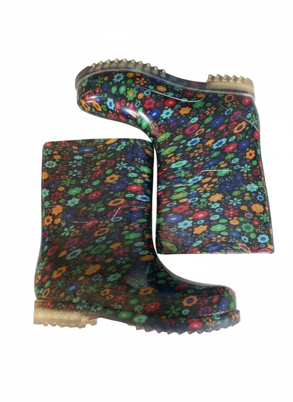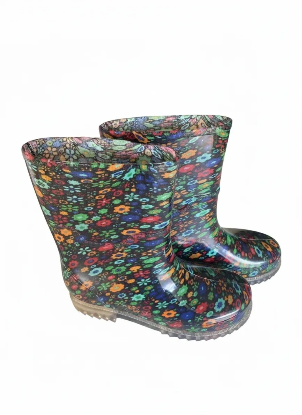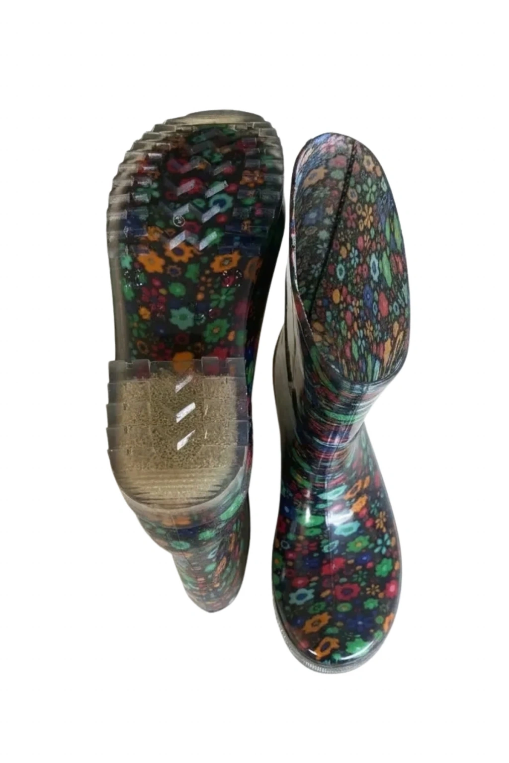 Bahçe ve Yağmur Çiçek Desenli Kadın Çizmesi 36-40 Yeşil