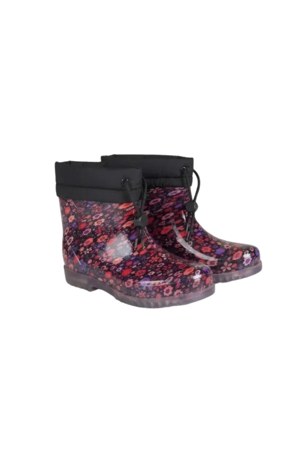 Konçlu Peluşlu Çiçek Desenli Potin Kadın Yağmur Botu 36-40 Turuncu