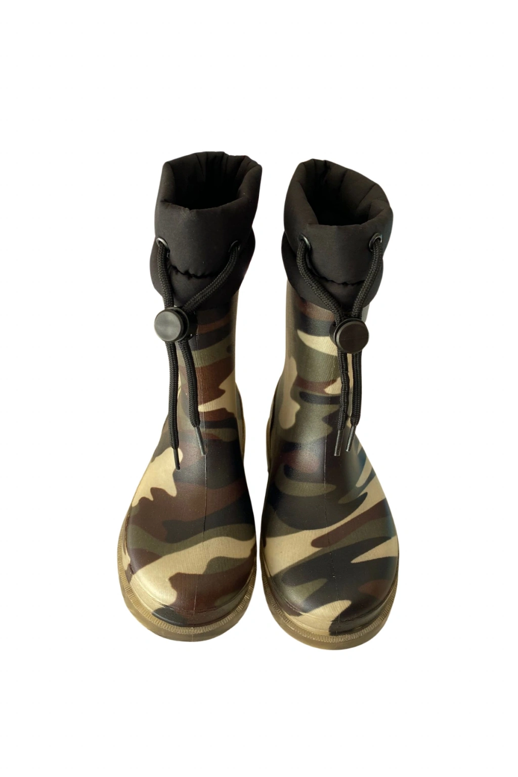 Konçlu Peluşlu Unisex Çocuk Yağmur Çizmesi 26-35 Şeffaf Kamuflaj, yağışlı ve soğuk havalarda çocukların ayaklarını kuru, sıcak ve rahat tutmak için özel olarak tasarlanmıştır. Günlük kullanım, okul yolu, bahçe ve açık hava aktiviteleri için ideal bir yağmur çizmesi modelidir.